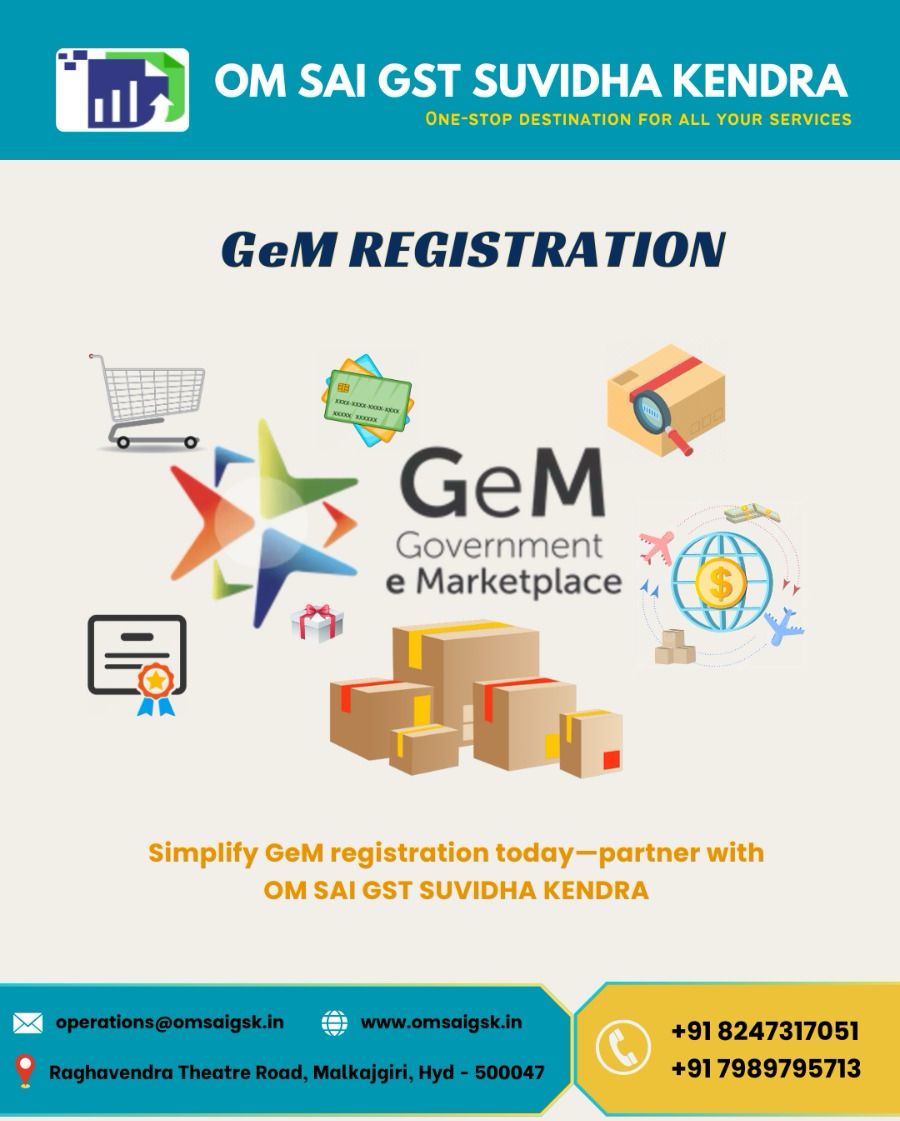 Registering your business on the Government e-Marketplace (GeM) portal in Malkajgiri, Hyderabad opens up access to government buyers and e-tendering opportunities across India. GeM is a centralized online platform launched by the Government of India to facilitate procurement of goods and services for various government departments, PSUs, and ministries. At Om Sai GSK, we provide complete GeM registration support for startups, MSMEs, traders, manufacturers, and service providers. From profile creation to product listing and document verification, we help businesses in Hyderabad join India’s largest B2G (Business-to-Government) marketplace with ease and confidence.